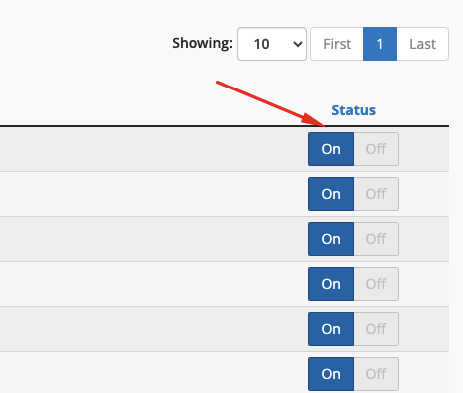 Untuk domain tertentu saja, klik tombol Off pada baris domain yang diinginkan.